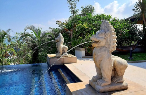 This stunning 10+ Bedroom sea-view villa is the largest villa in the area at over 20000sq ft of living area, with the space and facilities for entertaining on a grand scale. Perfect for extended families, small conventions, groups of friends, weddings, borthdays, bachelor / hen partie or for opulent spacious living for smaller groups. Villa Surin is set amongst tropical gardens in a gated community, close to the Amanpuri and Twin Palms hotels, and in one of the most sought after areas of Phuket's west coast. Villa Surin is nestled amongst the trees on a small hill overlooking the beaches of Bangtao, Surin and Layan and the jungles of Thalang.
