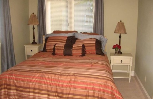 This cottage is approximately 1800 sq. ft. and has a view of Mt. Diablo. It is all 1 level with 1 step up from the dining area.The third bedroom is set up as a den with queen sofa bed, laundry area and television. There is a lovely private yard with fountain. There are 2 fireplaces, wood floors and knotty pine walls.
