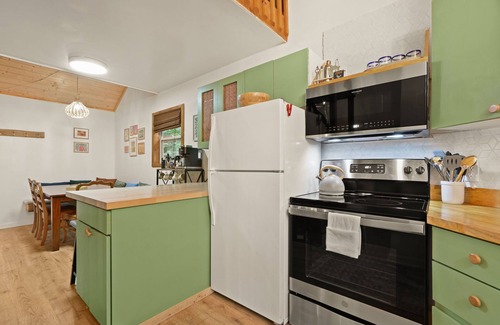 Enjoy a stay in the high country at this fully-stocked and private chalet in Banner Elk. Wake up and enjoy a cup of coffee from our full-stocked coffee bar on the deck as you look out on the quiet and private mountain community. Spend the day adventuring in Grandfather Mountain, downtown Banner Elk, Sugar Mountain, Beech Mountain, Boone, or Blowing Rock. In the evening, relax in the hot tub or watch a movie in the outdoor theater. Enjoy exploring the hiking trail that goes up the abandoned ski slope or skipping rocks and fishing from the Watauga River just a short walk from the house. Privacy, relaxation and adventure await!