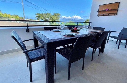 - a pretty terrace with its dining table, offering a view of wonderful sunsets over the sea and Moorea, which will seduce you every day.