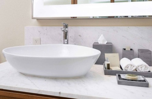 At the 5-Star Villa La Valencia resort hotel, you’ll enjoy first class comforts in your room, a balcony overlooking the pool or ocean, a super "lazy river", sandy beach, spa and fitness, and great restaurant options. As an option you can add "all inclusive" directly with the resort after booking. This room has 2 queen beds, walk-in shower, tub, towels and soaps.