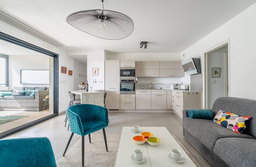 This air-conditioned apartment is located in a luxury building and offers a front row view of the Bay of La Ciotat and the Capucins beach.You are close to shops, restaurants, the port and 100m from the beach. The entrance to the shipyard is 18 minutes by foot, 8 minutes by car.The neat decoration and the complete equipment have been designed for your comfort with a terrace equipped with a plancha, garden furniture, air conditioning, dishwasher, washing machine, dryer, fiber, parking, ...Included in the rental: WIFI, end-of-stay cleaning, sheets, towels, secure parking and your first consumables (coffee, toilet paper, garbage bag, washing-up liquid, dishwasher and washing machine capsules).It is possible to quote regular linen replacements and intermediate cleaning for long-term rentals. You are 100 m from the Capucins beach and only 10 minutes walk from the port and the old town. This location is ideal to fully enjoy the sweetness of Ciotadenne life on foot and stroll from alley to alley. Everything is easily accessible, shops, restaurants, beaches, markets, ... The luxury building offers great services: building and elevator secured by code, closed box for your vehicle, bicycle parking and quick access to the beach through the courtyard of the building. It is ideal for holidays or business trips. We recommend this accommodation for up to 4 people.This apartment located on the 1st floor is through and very bright. The large bay window spans the entire width of the living room. It gives access to a beautiful terrace with an exceptional sea view. A large electric awning can be used to shade it if necessary. Aperitifs and meals to the rhythm of the Mediterranean climate are yours. The living room, with a large surface area, is composed of a lounge and dining area, an open fitted kitchen with its bar. The sleeping area is separated from the living area. It is composed of a large shower room.The first bedroom offers a double bed of 160x200 and a large storage wardrobe. The second bedroom is equipped with two single beds of 80 x 200 which can be grouped on request into a double bed and a large wardrobe. The bedding is of high quality and recent. A technical room offers a separate toilet and a laundry area with a large storage cupboard. It's very practical on a daily basis.A baby chair and/or travel cot can be provided upon request. Long-term rental is possible. Contact me for a quote.Guest AccessThe apartment is totally dedicated to you. Interaction with guestsYou will have a single contact available to welcome you, carry out check-in and check-out. This person will introduce you to the property as a whole, how it works and will be available during your stay if you have any questions about the accommodation. She will give you and comment on our tourist guide who will advise you on typical days to discover the region. She will be reachable by email, text message and on her mobile phone.Other notesSmoking is not allowed inside the accommodation.The apartment cannot be rented for parties or events.Pets are not allowed.The apartment is on the first floor with secure elevator. The car park is at -2 directly accessible by the elevator. Check-in times: 4 p.m. -7 p.m check-out time: 9 a.m. - 11 a.m. During the summer period, the agency will define the time of availability of the property and departure in these slots according to the schedule of the maintenance and reception teams.The NeighborhoodThe apartment is located by the sea. You will have easy access to the beaches where there are many restaurants and shops. The old town is about a ten-minute walk away. Let yourself be carried away quietly along small streets full of charm, and free of all traffic, the center being pedestrianized. We pass in front of houses whose construction dates from the fifteenth to the nineteenth century. The tangle of streets and alleys leads to many squares, such as the Place Sadi Carnot and its refreshing fountain near which you can stop for a drink.You can also take advantage of the new quays of the old port, which were completely renovated in 2019. The markets and terraces are all invitations to enjoy the rhythm of the products, dishes and the Mediterranean climate. You will be able to easily enjoy La Ciotat and its unique environment with its jagged and spectacular coastline, its bay nicknamed "THE GULF OF LOVE" but also its hinterland: Calanques Park, Calanque de Figuerolles, Mugel Park and Calanque, the Green Island, the beaches, Castellet circuit, ...On or underwater, on land or in the air, the choice of activities is wide: diving, sailing, kayaking, hiking or simply relaxing to enjoy the omnipresent sun.You can also get back in your car and set off at your leisure to discover the AOC vineyards of Cassis or Bandol, visit the Calanques by boat, opt for a golf course, go hiking in the Castellet massifs or in the Calanques reserve, discover the golden islands, Marseille, Aix en Provence, ...TransportYou will enjoy all the amenities nearby. Bus, parking, departure of shuttles to the green island or the Calanques. The SNCF train station is 3.7 km away and can be reached directly from the bus station.