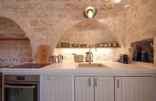 The nearest town is Alberobello, which is only 5 minutes away by car. Here you will find large supermarkets, pharmacies, but above all a world-famous historic centre, rich in history and typical restaurants with excellent local cuisine. Not far away are other places of interest such as Martina Franca, Locorotondo,Castellana Grotte, Monopoli, Ostuni, Polignano a mare and much more. The famous town of Matera is an hour's drive from the Trulli.