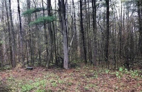 Wonderful site surrounded by Pine Trees and view of hay field and corn field.