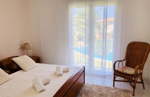 Located in Denia, this vacation home is near the beach. Denia Castle and Els Poblets Roman Site are local landmarks, and some of the area's activities can be experienced at Denia Beach and Denia Marina. Garden of L'Albarda and The Lavender Gardens are also worth visiting. Scuba diving and snorkeling offer great chances to get out on the surrounding water, or you can seek out an adventure with hiking and mountain biking nearby. Our townhouse, which we offer in Denia on the Costa Blanca, is very comfortably and tastefully furnished. It radiates warmth and comfort. It is 500 meters to the sea. A variety of small restaurants can be reached on foot in 5 - 10 minutes, and a supermarket is also nearby. The terrace and the roof terrace offer opportunities for sunbathing. The covered terrace is the ideal place for the hot hours of the day. Garden furniture for 4 people and 4 sun loungers are also available. Only a few steps lead to the spacious communal pool, which, embedded in a large, well-tended park with many palm trees and other Mediterranean plants, invites you to swim and / or splash around.