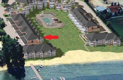 The unit comfortably sleeps 7, and this is the MAXIMUM number of people permitted. The master bedroom has a queen bed, ensuite bathroom, fireplace, door to upper patio, and a full lake view. The second bedroom has a queen bed. The third bedroom has a queen bed and an extra-long single bunk bed. The unit has a large maple kitchen, and newer, higher end appliances. The dining room table comfortably seats 8. The living room has a 46 inch LCD HD TV, digital cable box with DVR, stereo with CD player and a DVD player with surround sound. Free access to a wired or wireless high-speed internet. The large patio has a beautiful deep seating arrangement with fire table and gas grill. There is also an en-suite washer and dryer, and all linens and towels are included.