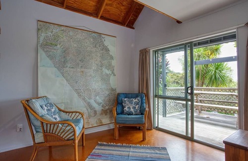 It's just a short walk down the road to a lovely small beach sheltered by mature pohutukawa trees.