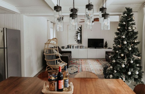 The light and airy cottage has three bedrooms and sleeps up to 10 guests. Enjoy your favorite family meal prepared in the modern and fully stocked kitchen. Snuggle up on the extra deep leather sofas or roast a marshmallow in the wood burning fireplace. Our modern bathroom with luxury Turkish cotton towels and brand new beds covered with soft white sheets, comfy duvets, and fluffy pillows will leave you feeling rested, rejuvenated and ready for another day of play in the lake or the woods!