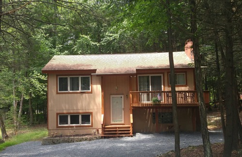 Home away from home the front deck has lounging chairs and table for a quiet evening sipping on refreshing drinks enjoying the country life and nature. The back porch has a large grill for BBQ and deck chairs and tables for entertainment. The lower level of the house is set up for mature couple looking for romance. A large bathroom with a big hot tub, a bedroom, a bar with a big TV, a laundry room with a full size futon is located on that floor. The upper floor has the family room with a fireplace and a Large TV. Also on that level you will find 2 bedrooms with queen size beds . Full size kitchen with microwave, coffee maker with coffee provided, utensils, pots and pans.