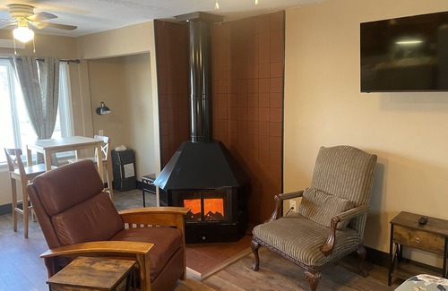 The Birdhouse is a comfy studio apartment in with a compact but full kitchen and a full bathroom. Enjoy the blackout curtains and turn on the (fake) fireplace.