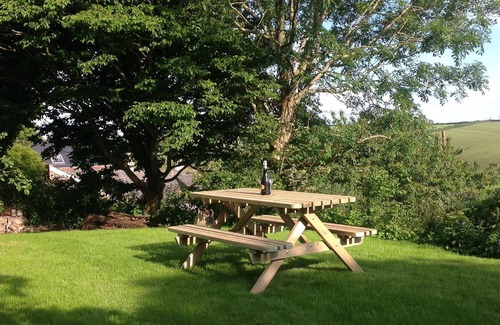 The garden has a picnic table where you can sit & enjoy the surroundings & view across the valley to St Endellion Church.