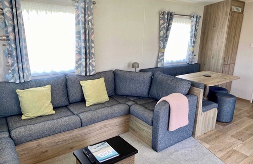 Comfortably accommodating four people, you will have one king size bed and two single beds. All bed linen and towels are included. There is also an indoor dining area, spacious lounge and fully equipped kitchen. There are also four garden chairs for lounging on the grass area outside when the sun is shining! The smart TV is connected to the WiFi with Netflix, Prime and Disney Plus apps installed and ready to use, although you will need your own login credentials to use these services. You will find a great selection of board games for evening family time, We also have beach buckets and spades for you to take to the beach. Laundry facilities on site but not in the caravan.