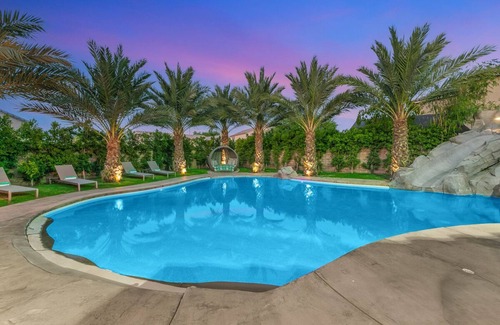 The Bungalow - Unique desert tropical experience, Giant pool with slide has 6 Bedrooms , 4 Bathrooms, and max occupancy of 16 people. The minimum rental for this property is 1 nights, but this can change depending on the season you plan on staying. Previous guests have given good rated it, and VRBO labeled it a top-rated House because of the excellent services rendered by the owner or manager of this House, and has consistently provided great experiences for their guests. Most families or guests that use it recommend it to their friends and some of them are repeat guests. House has a friendly neighborhood, and the Coachella has interesting places to visit. If you want to learn more about the House in Coachella, such as places to visit and things to do nearby, you can check below to learn more.