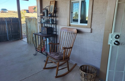 Relax with the whole family at this peaceful place to stay. Just a "whoop-n-a-holler" away from the bustling Historic District, our guest cottage sleeps 4. Private driveway and entrance. Secured by gate and privacy fence, there's plenty of room for family and pets. Limited mobility accessible with no steps. Large porch/patio rewards you with world-class views of Arizona mountains and sunsets. Full kitchen, games in the closet, free wi-fi, books to read, and movies to watch. Make yourself at home at the Cactus Rose Cottage.