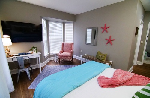 Escape to Destin’s white sands in this relaxing main-floor room, blending modern design with beachside warmth. It features a queen-sized bed, en-suite bathroom, and vibrant colors for a five-star feel. The room also shares a cozy sitting area with the Naples Room, ideal for sipping coffee, watching TV, and unwinding after a day of exploration or beachside relaxation. Enjoy both comfort and convenience in this inviting retreat.