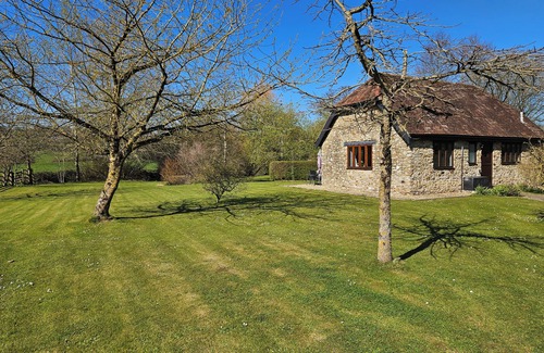 Amenities: Oil central heating. Electric oven, grill and hob, microwave, fridge with ice box, washing machine. Smart TV, WiFi. Fuel and power inc. in rent. Bed linen and towels inc. in rent. Off-road parking for 2 cars. Shared gardens with lawns, gravelled patio area, barbecue, furniture. Two well-behaved dogs welcome. Sorry, no smoking. Shop 0.9 miles, pub 0.7 miles. Note: The gardens are not enclosed and there is a stream and a pond at the bottom of the garden so supervision of children and dogs is advised and we ask that you bear this in mind when booking. Note: If you wish the king-size bedroom to be made up as a twin please let us know prior to your arrival