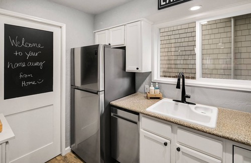 The cozy, fully equipped kitchen includes new stainless steel appliances, a gas stovetop, and all the essentials for your cooking needs. The dining area seats six, and you can also enjoy al fresco meals on the deck as the sun sets over the lake.