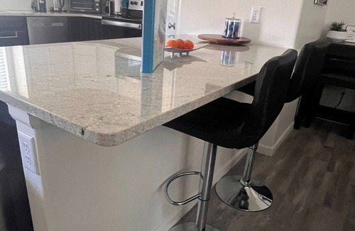 The upscale kitchen features granite countertops, stainless steel appliances, and all the room you need to snack, cook, or chill. You’ll enjoy full access to the refrigerator, cabinets, and cupboards and help yourself to other amenities: