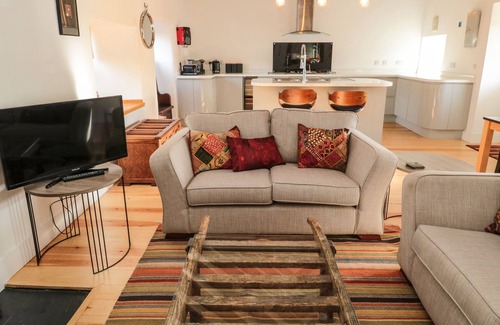 The living areas in the property consist of an open-plan living space with a kitchen offering an electric oven, gas hob, microwave, fridge, freezer, washing machine, dishwasher, wine chiller, coffee machine, a dining area with seating for two people and a sitting area with a TV and woodburning stove. There is one king-size bedroom, along with a shower room. Outside, there is an enclosed front courtyard with patio and furniture, and off-road parking. Within 4.1 miles, you will find a shop, and within 0.8, a pub. Please note that this is a pet-free and smoke-free let. WiFi, fuel, power, a starter pack for the woodburning stove, bed linen and towels are all included in the rent. A rural break to remember awaits at The Dairy. Note: The owners live on site.