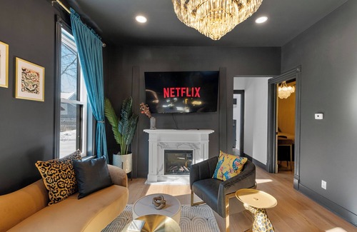 Ready to roar? The Deco Lounge in Walker's Point is your Art Deco dream! Think Gatsby glamour, playful animal prints, and luxe vibes. High-end finishes and a moody palette create a sophisticated ambiance. Explore the neighborhood's vibrant scene or relax in your stylish retreat.