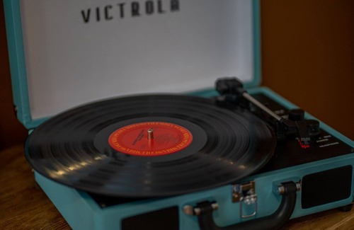 The living room has a couch that converts to a very nice queen size sleeper sofa, smart TV, Victrola record player and a few eclectic tunes. The quaint dining area has seating for 4, and a large desk for any "work from home" needs.