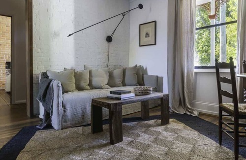 The two bedroom apartment sees old and new seamlessly collide. Sit by the ease of a gas fire place amongst 190 year old sandstone walls with a local gin in hand and curl up in the comfiest queen sized beds made with top quality linen next to perfectly imperfect convict brick fireplaces.