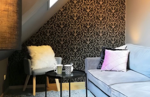 The accommodation, both glamorous and chic, offers a lounge ambiance and can host 2 to 4 people. It is located in the city center, right next to hiking trails, the thermal spa, and the casino. Hiking maps and a guidebook are at your disposal.