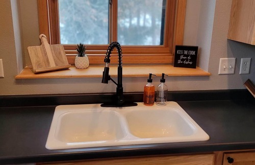The kitchen is fully stocked with everything you may need. Coffee maker, toaster, pots, pans, plates, bowls, silverware, mixing bowls, strainer, baking pans, microwave, refrigerator, dishwasher, oven and range. If you prefer a bbq, our 4 burner gas grill will be all that you need. Dinning room table seats 9, but has a large extra leaf and folding chairs to add space. We also have a attachable booster seat for the little ones.