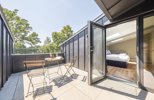 The Grain Store has been re-interpreted into a contemporary, low-key, environmentally-aware stunning piece of art. Sitting in a third of an acre of expansive grounds, this striking barn would not look out of place on the Pacific coastline. Inside this PassivHaus you will find the latest technology and design features, combined with sophisticated and luxuriously spacious, light-filled accommodation. The main living areas can be opened up to create a seamless open-plan space, or slide the discreet secret doors closed to create more intimate private rooms. The smart fully fitted breakfast kitchen is perfect for large groups, featuring two ovens, two dishwashers, and two fridge/ freezers. There is even a wine fridge for all entertaining needs. The adjoining utility provides laundry facilities, an additional sink, and further storage. Next door, the double height vaulted sitting/ dining room is a sociable space with full height windows and doors that allow light to flood the room. Tasteful furniture is arranged around a wood burning stove. A spiral staircase leads to a mezzanine library nook, creating eye-catching focal points. For entertainment, there is a dedicated television/ cinema room with an impressive 85" television. And, if you're feeling competitive, head to the games room boasting a pool table and table football. Outside, is a secluded spot with a permanent outdoor table tennis table. Use of the hot tub is also available for an extra charge. The barn has six generous-sized bedrooms; two on the ground floor and four on the first floor, all of which have glazed doors opening to either private or shared terraces, with a combination of three en-suite, and two shared bathrooms.