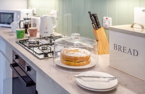 The stone barn conversion sits alongside four similar holiday homes within the grounds of a country manor house. Inside, the property beautifully combines original features, such as exposed trusses and whitewashed walls, with stylish decor and an array of homely touches. On the ground floor, you’ll find two country-cottage-style bedrooms – a double and a twin – along with a sleek family bathroom. Upstairs, discover a bright, open-plan living area with a vaulted ceiling and French doors opening onto a Juliet balcony. Spend time here, preparing delicious feasts in the contemporary kitchen area and sharing family mealtimes at the wooden dining table. In the evenings, light the wood burner and get cosy in the comfortable lounge area with your favourite film on the Smart TV.