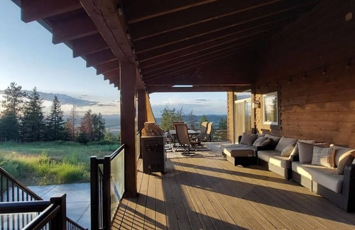About the Grand Getaway at the Green Bluff Getaway- This 4 bedroom 3 bath executive home is situated right in the heart of Green Bluff on a gated 10 acre property between several beautiful wedding venues and family farms. Incredible views, a gourmet kitchen, sunken living room and foyer that surround a towering rock fireplace, large master bedroom with en suite bath, theater room, fitness room and 3 guest rooms and spacious decks make for an outstanding place to gather and entertain your group The whole home and garage, decks immediate yards and parking areas