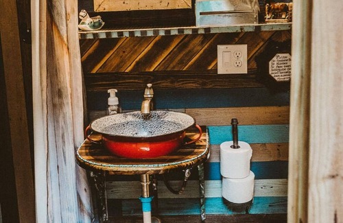 Want to get away for the night and stay in a one of a kind vintage RV? Perfect for couples looking to get away or for a girls weekend of glamping. The Green Egg has a full size bed and breakfast table inside. It is stocked with coffee, small refrigerator and microwave. An outdoor gas grill provided. There is access to a modern bathroom.