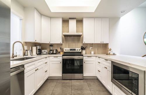 Welcome to The Grey House! Escape to the desert and soak up the sun-drenched days and warm desert nights in this newly updated, chic and modern pool home in the beautiful La Quinta Cove. From breathtaking mountain views to your own private yard with lush landscaping and a sparkling pool, this home is guaranteed to give you the relaxing vacation you deserve. Open floor plan, modern furnishings, and a fire pit are just a few of the many amenities.