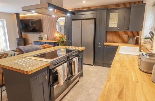 The Grove consists of an open-plan living space with a kitchen with range electric cooker, electric hob, dishwasher, fridge/freezer, kettle, and toaster, a dining area with dining seating for six, and a sitting area with TV and woodburning stove. The bedrooms consist of a ground-floor king-size and two king-sizes. There is a bathroom with bath, shower over, basin, and heated towel rail and WC. Outside, there is an enclosed rear garden with lawn, patio, furniture, and hot tub and off-road parking for six cars. Two well-behaved pets welcome, but sorry, no smoking at this property. There is a highchair and travel cot available. Guests can find a shop within 3.3 miles and a pub in 1.6 miles. WiFi, fuel, power, bed linen and towels are all included in the price. Visit The Grove for your next adventure. This property has a good housekeeping bond of GBP350