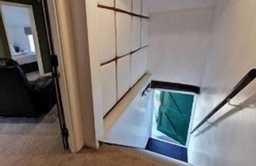 The Hayloft is a first floor flat with its own private entrance. The private front door opens on to a wide staircase which leads up to the landing with storage cupboard with hanging space.