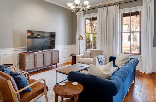 This 140 year old home has been completely updated, while still maintaining its historic charm. At the top if the grand staircase you’ll find a spacious owners suite with a king bed and large private bathroom. There are two additional bedrooms on the upper level (one with a queen and the other with a full bed), a bathroom, and laundry.