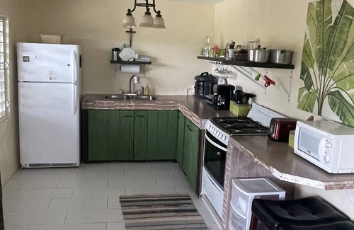 Beautiful house in the heart of Vieques Island. Enjoy a huge wrap around patio and a relaxing salt water pool. You are minutes from any of the world recognized beaches of Vieques. Cook at home in the fully furnished kitchen, BBQ on the grill, or go out and enjoy the cuisine. If you want an authentic experience in a Puerto Rican neighborhood, this is the place. Spend the afternoons at the beach and the morning and evenings gathered around the pool.