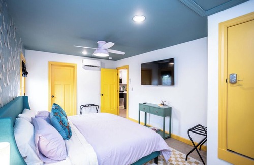 OUTDOOR RECREATIONAL AREA: While staying at The Rainbow Ritz in Taylor Hills Hideaway, guests enjoy exclusive access to the entire second-floor retreat. The outdoor recreational area (including the hot tub) is shared with guests from neighboring suites within the hideaway, necessitating mutual respect among all visitors. Kindly consider others to ensure that everyone can fully enjoy the amenities. If you are bringing a dog, it is required that you notify us as hosts, clean up after your pet, and keep your dog leashed the entire time they are in our outdoor spaces. Practicing common courtesy is essential for ensuring a pleasant experience for all.