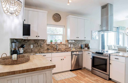 We just know you’re going to love a vacation at The Key Lime Cottage! You’ll find this charming beach home in the Perdido Key Coves neighborhood, located on a canal just steps from the beach. This four-bedroom, four-bathroom home can easily sleep 16 guests, so bring your friends and family when you’re coming down to the beach! Once you're inside, take note of the two living rooms – one with a view of the Bay and the Perdido Key State Park, and one with a view of the canal – and a fully equipped kitchen featuring granite counters and a matching granite backsplash. The kitchen is perfectly situated between the two living rooms, allowing chefs to join in the conversation as well.