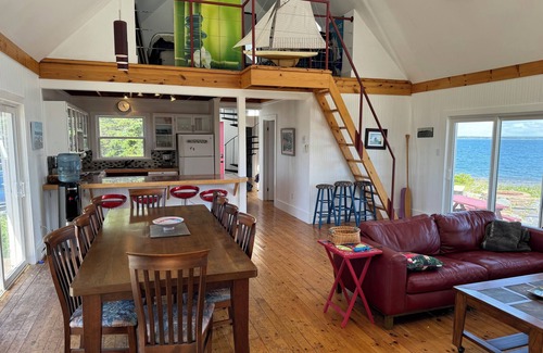 The Lighthouse is 3 bedroom and loft, inactive lighthouse which was built in 1989 as a replica of the traditional 44 foot high Nova Scotian wooden lighthouse which at one time dotted the coastline of the province to keep mariners safe. The house has 4 queen sized beds and is spacious, modern and comfortable. There are incredible views in all directions with the pristine waters of Mahone Bay and the open Atlantic Ocean on both sides of the property. The Lighthouse is oriented so that guests can enjoy the sunrise and sunset from the large patio. There is ample parking for 5 vehicles. A large fireplace and unlimited firewood makes it cozy inside when the Atlantic storms rage outside. The beach is a short walk away and there is a spare mooring if you have a boat to bring on your adventure.