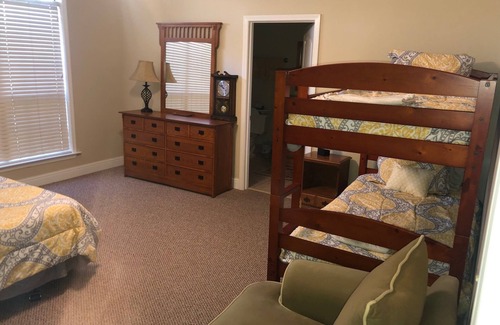 Rooms: 2 Bedrooms, 2 Baths (1 Queen, 2 Fulls, 3 Twins); Occupancy: 9 in beds plus two sleeper sofas in Living area. One bedroom has a Queen and one set of bunk beds (two twins) and second has a twin over double bunk and another double. Charcoal grill with charcoal and lighter fluid stocked. DirecTV, satellite TV. Awesome screened in porch. Great open floor plan and comfortable lodging for a quick and easy get away to beautiful nature year round.