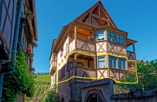 Located on the first floor of our large Renaissance house built on the ramparts (1291) just near the Schœnenbourg vineyard, this lovely apartment for 2 people occupies the site of the medieval householder's lodging.
