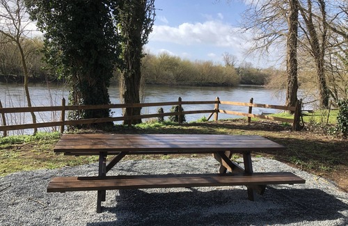 The double exposure allows you to access on one side a very large swimming pool, and a small private terrace. The other side overlooks another part of the park that borders the river.