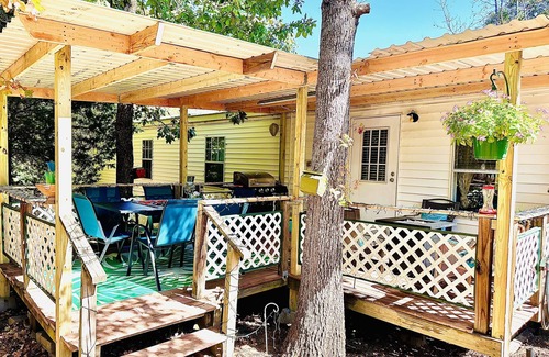 Perfect fishing vacation home! Read the reviews. Let us host your next adventure to Lake Eufaula. 18 x 20 covered boat parking, boat ramp two blocks away, ramp has been used by experienced boating guests without issue. Three miles from Arrowhead State Park with beautiful golf course and sandy beaches. This vacation home is the perfect comfort after a day at the Lake or out riding ATVs, golfing, or fishing. Big Solo fire 🔥 pit with seating (6 Adirondack chairs) for a fun evening under the stars. The beds are very comfortable for a stress free rest. The home is fully stocked for cooking or grilling with a private backyard that includes covered patio dining, propane grill and small fire pit/seating area perfect for relaxing. The amenities to this home are endless. There is so much we offer to make your stay stress-fee. Get ready for a peaceful time at Lake Eufaula.