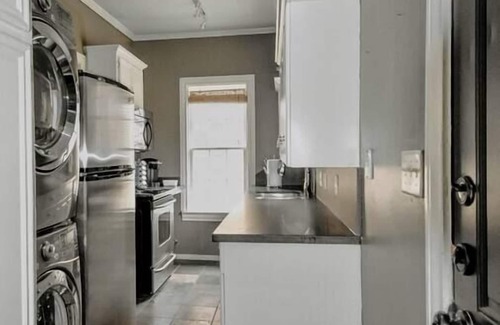 This first floor 2 bedroom/1 bathroom apartment is full of character and located in Bryan's historic district, half-way between Texas A&M (3 miles) and downtown Bryan. Enjoy the Video Arcade Center. It also boasts fun and comfortable King beds, eclectic decor, a 65 inch TV that streams Netflix and Amazon Prime. With its' central location, it is an easy drive anywhere in Bryan/College Station The apartment includes dedicated parking and a deep southern porch.