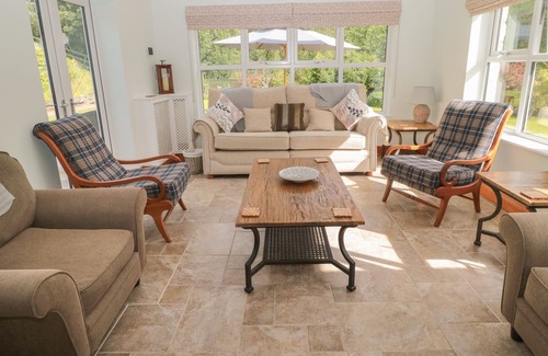 Amenities: Oil central heating with woodburning stove. Range, electric oven and hob, microwave, fridge/freezer, washing machine, tumble dryer. TV with Netflix and Amazon Prime, WiFi. Fuel, power and starter pack for stove inc. in rent. Additional bags of logs available for £5 on an honesty box basis. Bed linen and towels inc. in rent. Telephone provided on an honesty box basis. Private driveway parking for four cars. Front garden with lawn and patio. Enclosed rear garden with lawn, patio and furniture. One well-behaved pet welcome. Sorry, no smoking. Shop 8.5 miles, pub 0.1 miles. Note: The games room is in the external double garage. Note: The table tennis table is in the garage but can be moved outside