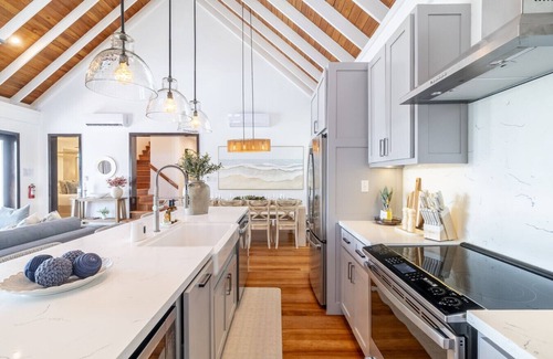 The first floor features three bedrooms, each with a private ensuite, while two additional bedrooms upstairs share a full bath — perfect for families or groups. Professionally designed interiors create a warm, inviting atmosphere, with TVs in every room and high-speed internet throughout.