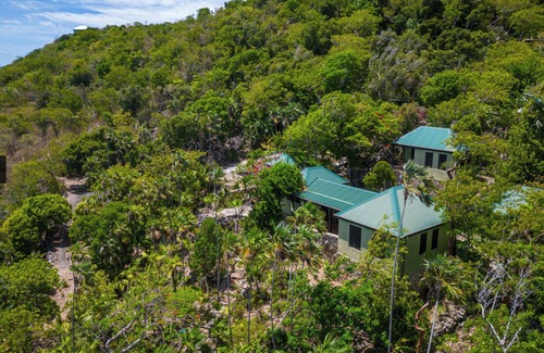 Your super-private island getaway awaits with two bedroom cottages on Great Camanoe. With 1 queen bed and 2 twin beds, this cozy retreat offers 2 bathrooms with gorgeous outdoor showers for your convenience. This is the perfect place to forget you're in the 21st Century... the view is the same as it was when it was built in the Seventies! At the end of the road, so no-one will be driving by, and you can't see any neighbors. Take a month to write a novel or a symphony. Use of a Jeep to drive down any of the 4 private beaches... and if you need a quick boat ride to Marina Cay, you can use their ferry to go to Scrub Island (5 min trip) or over to the mainland at Trellis Bay (5 minute trip).