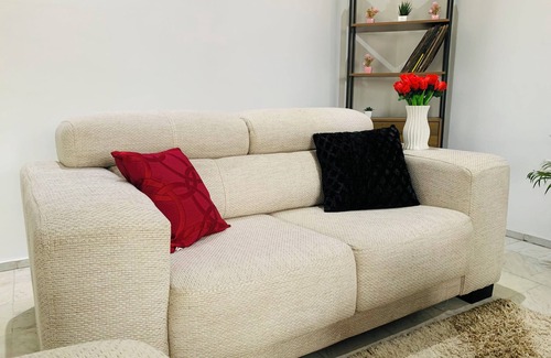 A living room, a dining area, air conditioning, and local meal delivery service are featured at this 2-bedroom, 2-bathroom rental. Bathroom amenities include a bidet, towels, and toilet paper. The kitchen is equipped with an oven, a stovetop, and a refrigerator, as well as a coffee maker, an electric kettle, and a microwave. And you won't have to pack extra clothes, because you'll have a washer and dryer, too.