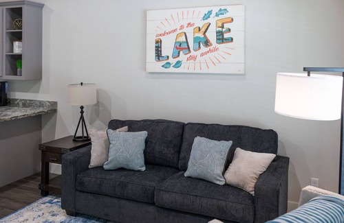 Two Creeks Crossing Resort's Deluxe Cabins have all the comforts of home and the wooded location gives them a cozy atmosphere. Each cabin features a full kitchen with refrigerator along with a bedroom that opens to the spacious back porch that’s perfect for sitting outdoors and enjoying the scenery. The couch in the living area folds out into an additional bed, making these cozy cabins perfect for families.